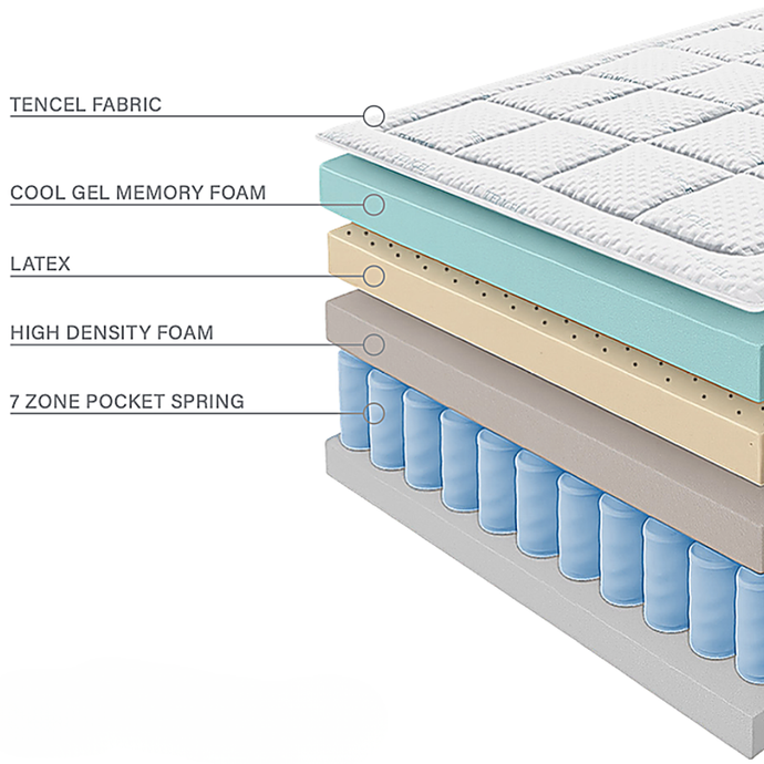 3D Tencel fabric technology and Cool Gel Memory foam keeps your body at the ideal sleep temperature for deeper rest
