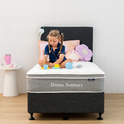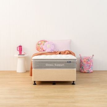 One of our plushest mattresses, the Osteo Support features a pillow-top for extra comfort. Combining a cosy ultra-comfort foam layer with our 3-Zone Pocket Springs, it’s soft, cosy and feels like a dream. Perfect for kids and guest rooms.