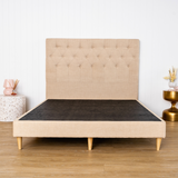 Timber meets touchable fabric in this effortlessly elegant bed base. This low-profile design