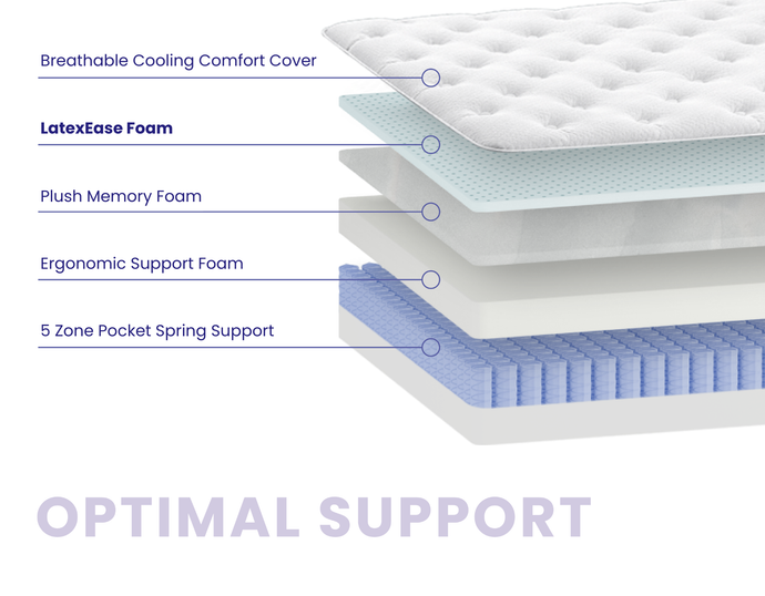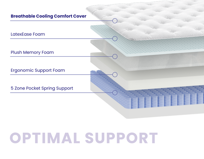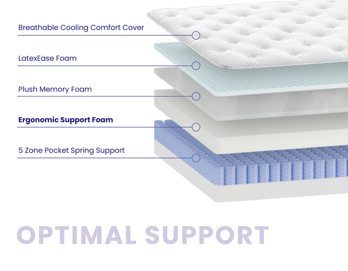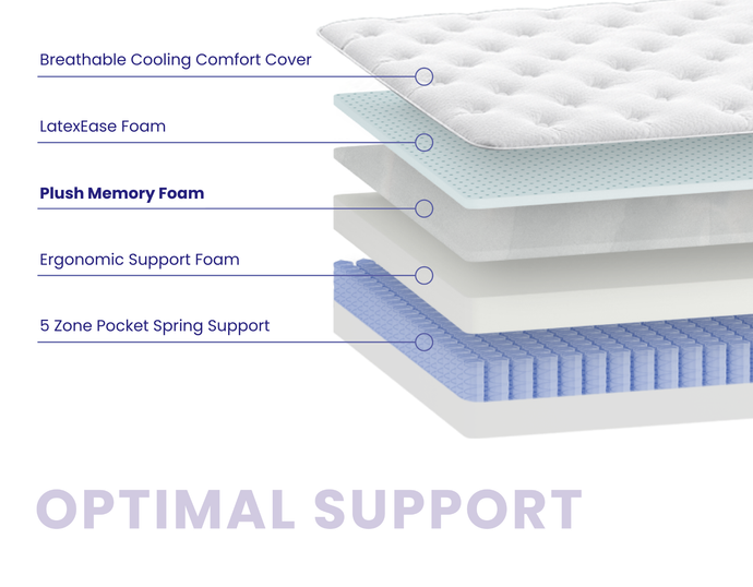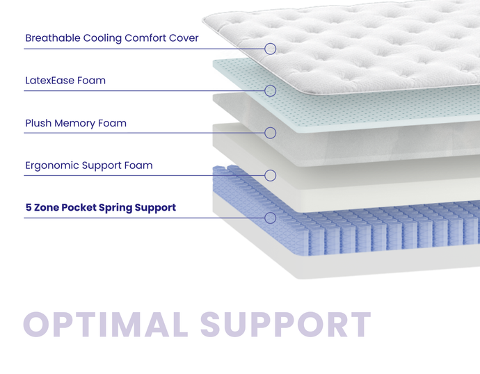 The ideal mattress. Plush, but supportive. Cosy, but cool. With 5-Zone Pocket Springs and soothing layers of foam, the Optimal Support has the ideal balance that’s perfect for everyday sleep.